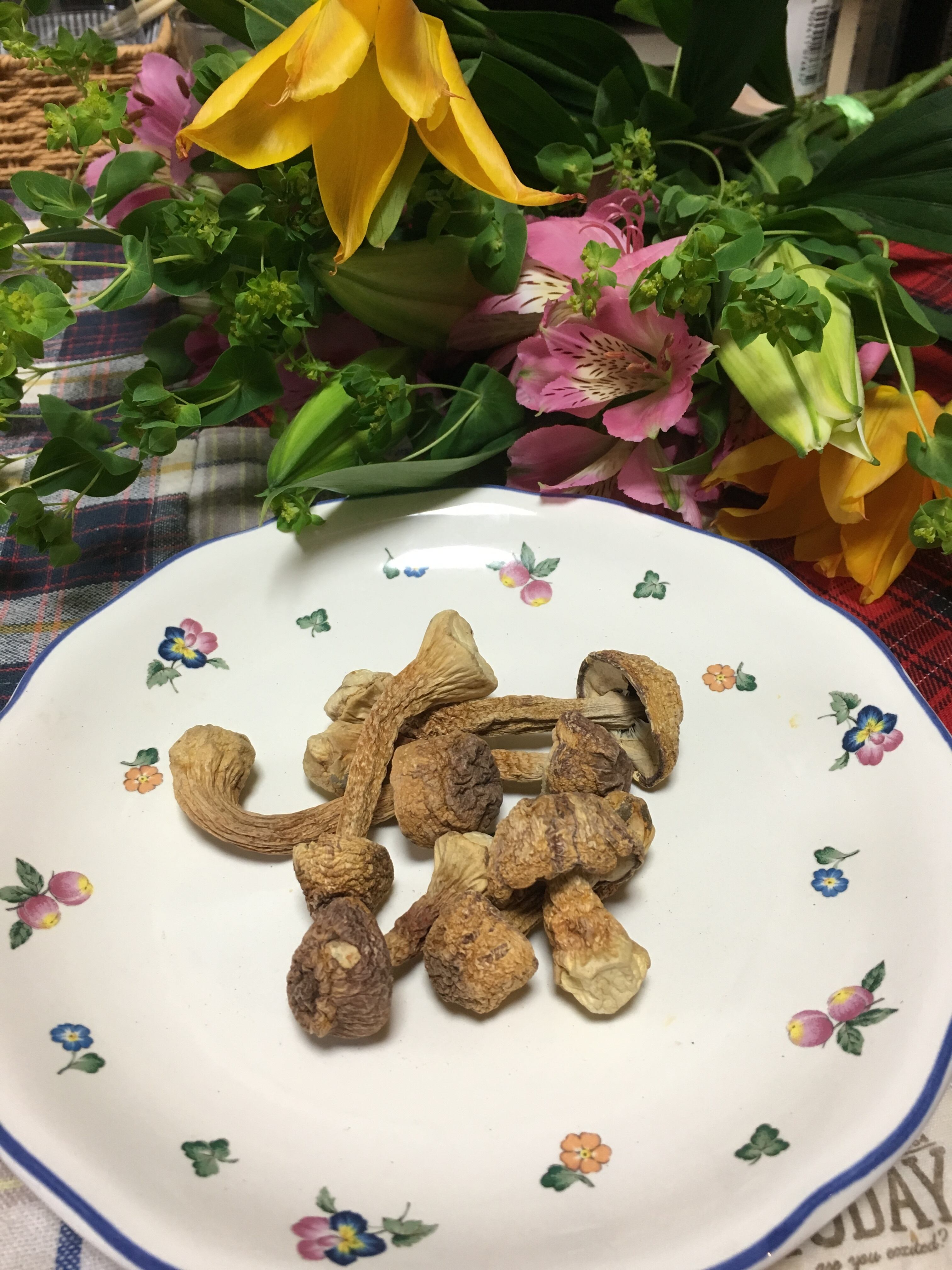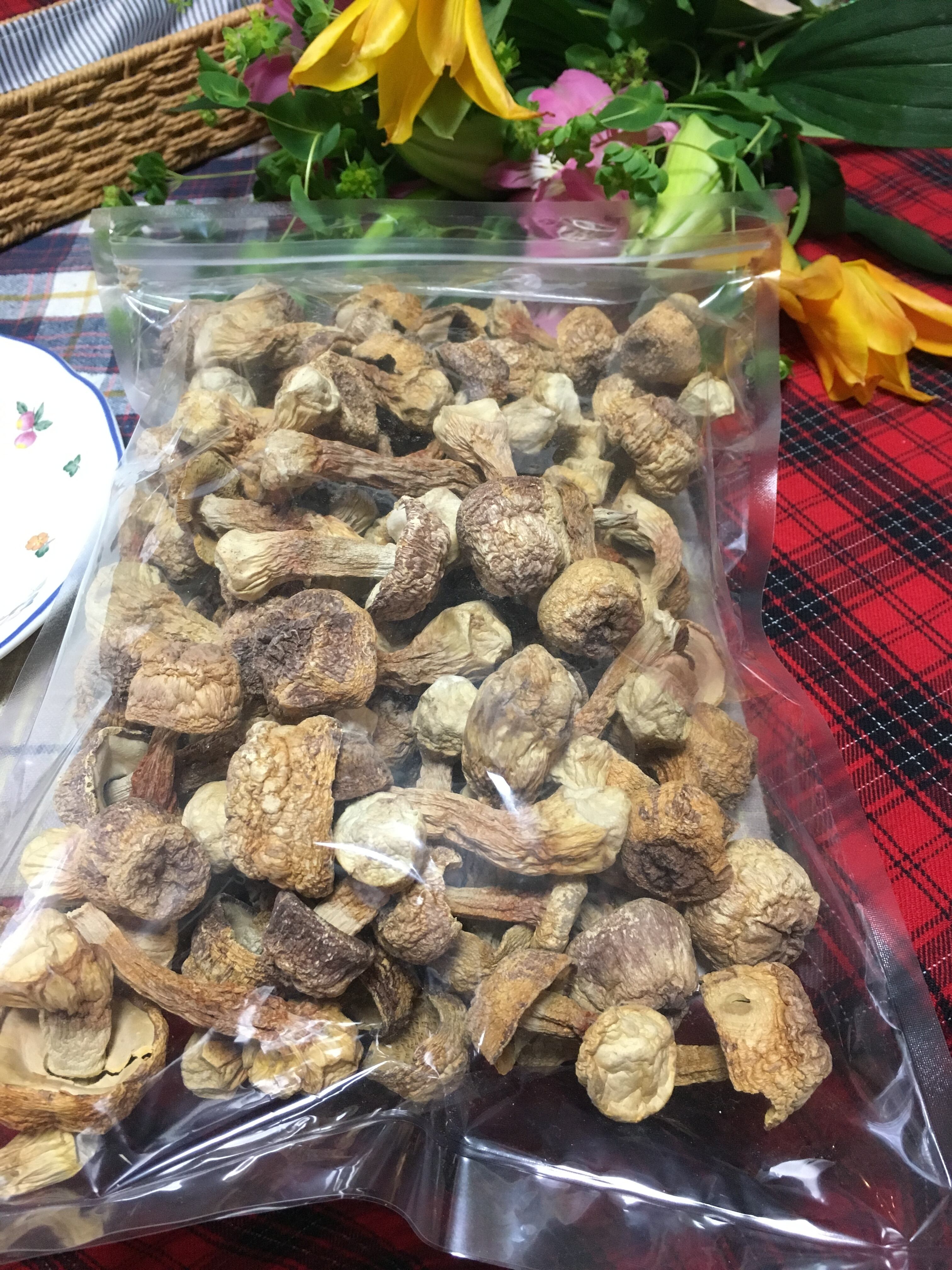 乾燥アガリクス茸です。1個3gから5gです。乾燥アガリクス茸5gを1日分として、水1リットルを入れた鍋に、アガリクス約2個から3個を入れ、沸騰させたあとトロ火で約20分煮出して下さい。この煮汁にアガリクスの抽出エキスが含まれます。これを冷蔵庫に保管して1日2回で飲み終えるのが基本です。